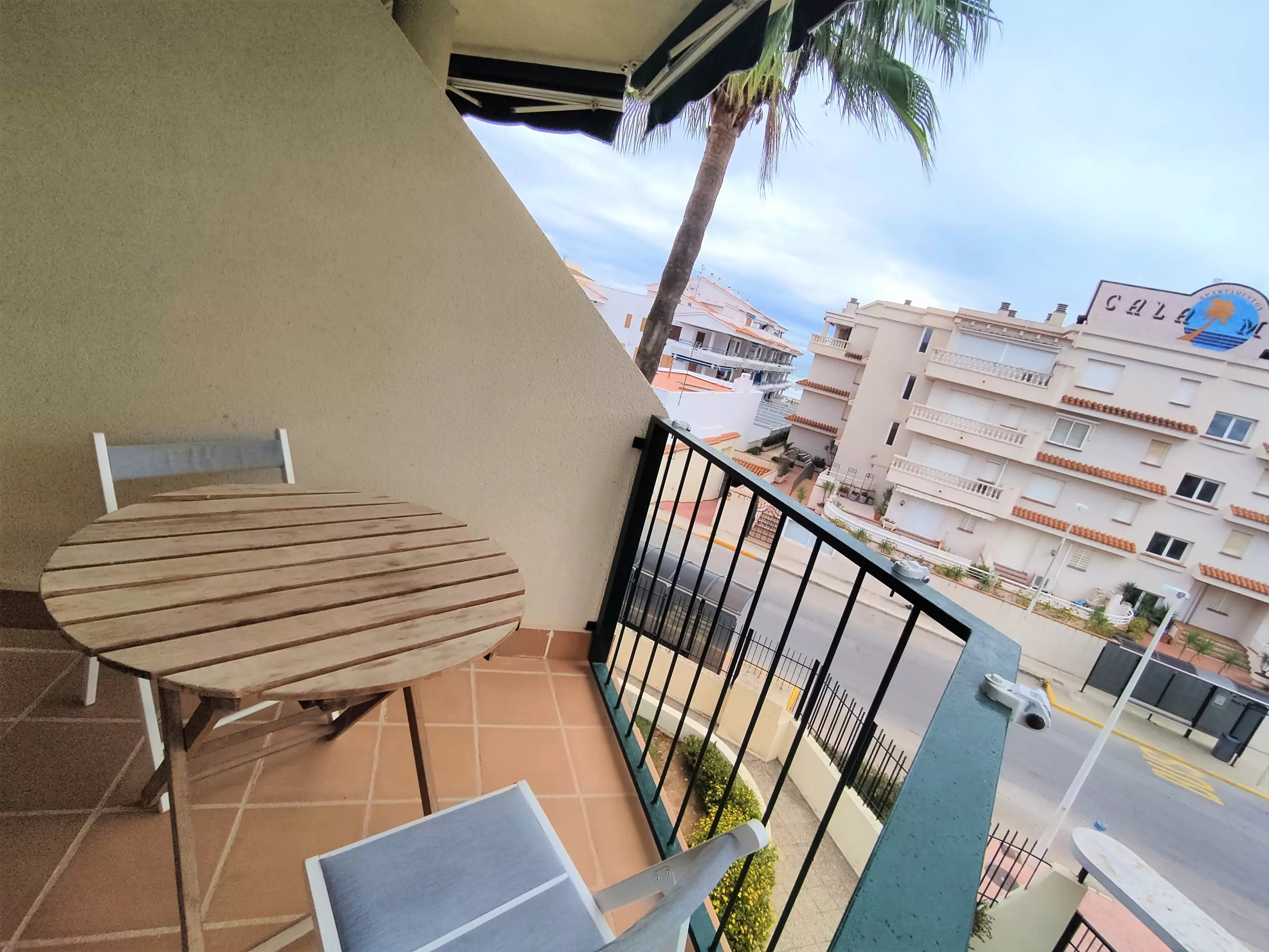 La terrasse, avec vue partielle sur la mer, est petite mais parfaite pour 4 personnes.