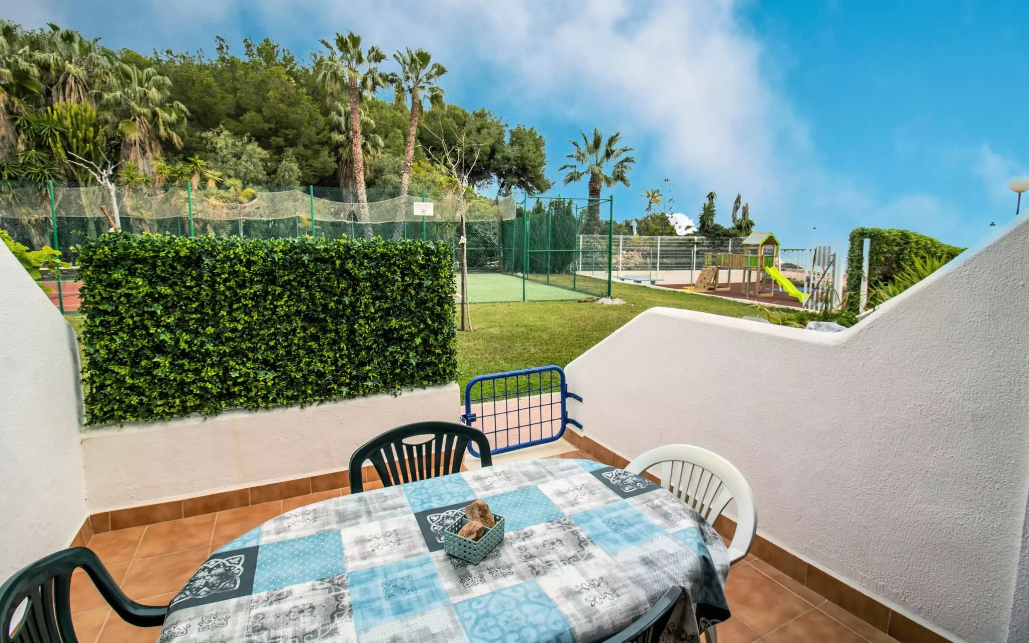 Elle dispose de 10 m² de terrasse, lave-linge, accès internet (wifi), terrain de tennis, piscine collective+infantile.