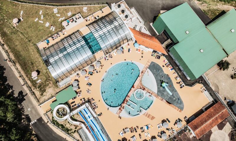 1 bassin de nage couvert – 2 jacuzzis – 2 bassins extérieurs – 4 toboggans – Espace Spa – Pataugeoire – solarium et parasols