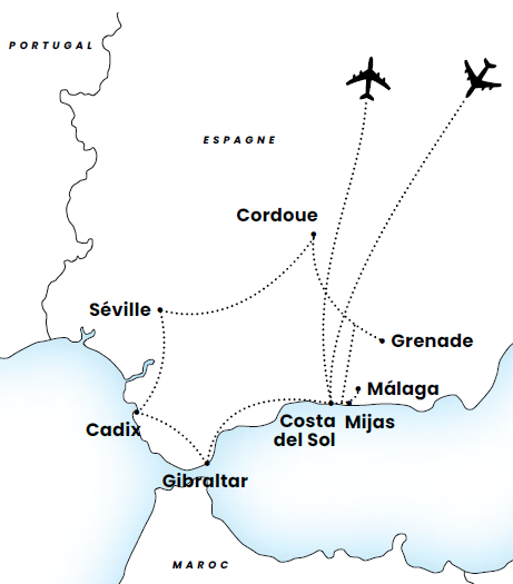 Splendeurs Andalouses 3* (GT) Europe - Espagne - Andalousie - Málaga - Malaga Réf : 96338 à partir de 1 685 € par pers. au départ de Paris (+13 autres villes de départ) Prix TTC, par pers. base hébergement double